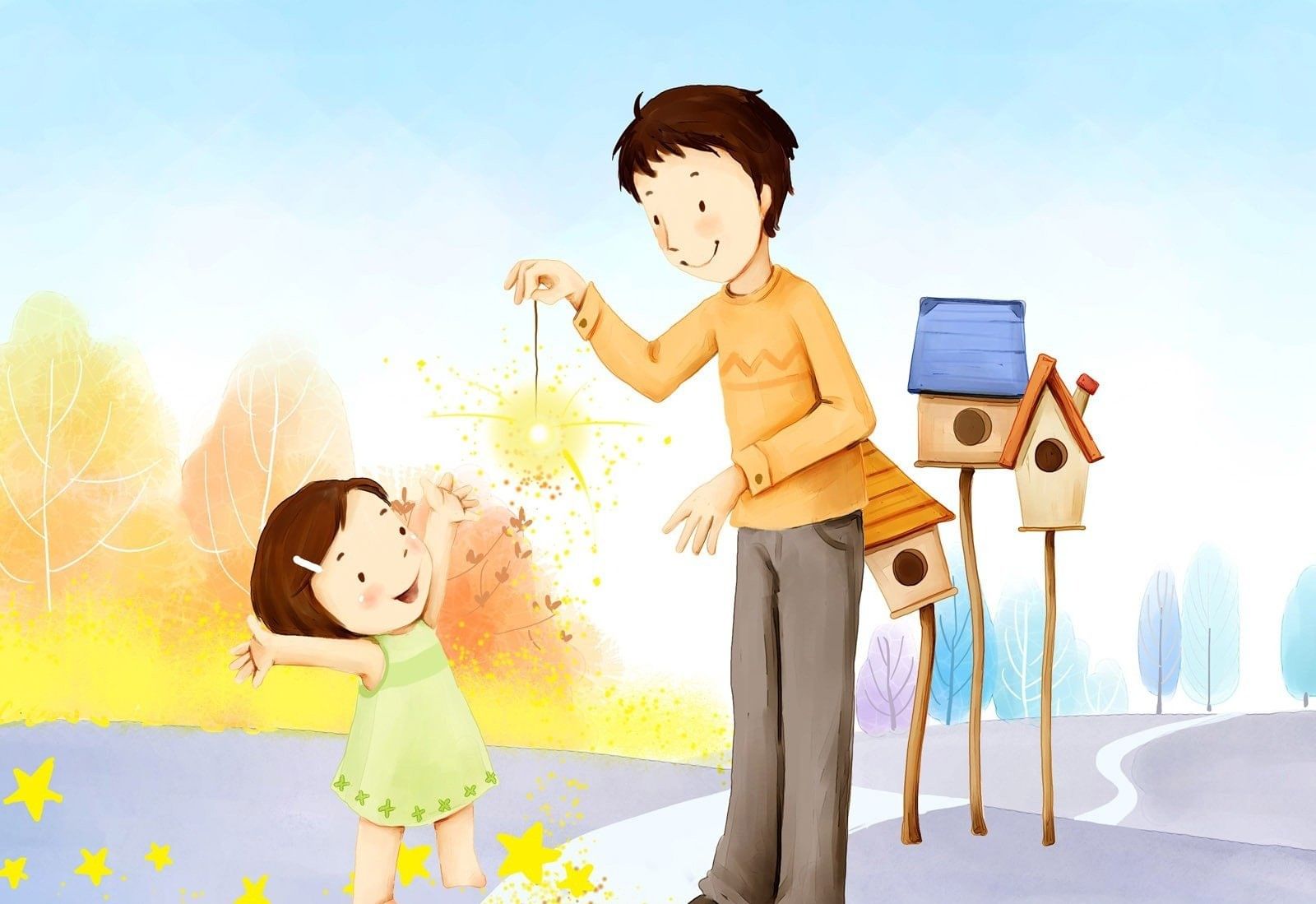 Папа с детьми мультяшка.