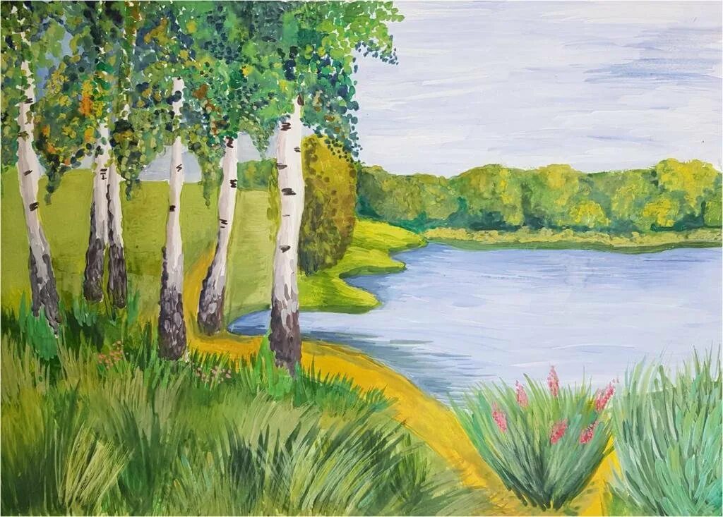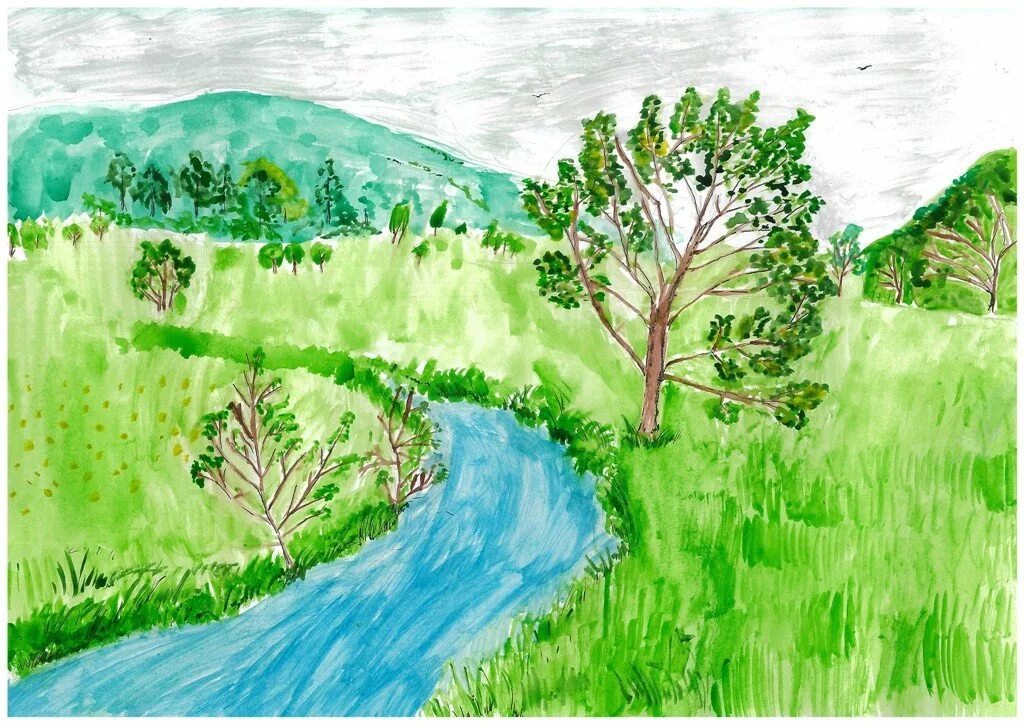 Пейзаж рисунок для детей.