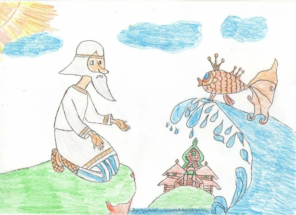 Рисунок сказка о рыбке и рыбке