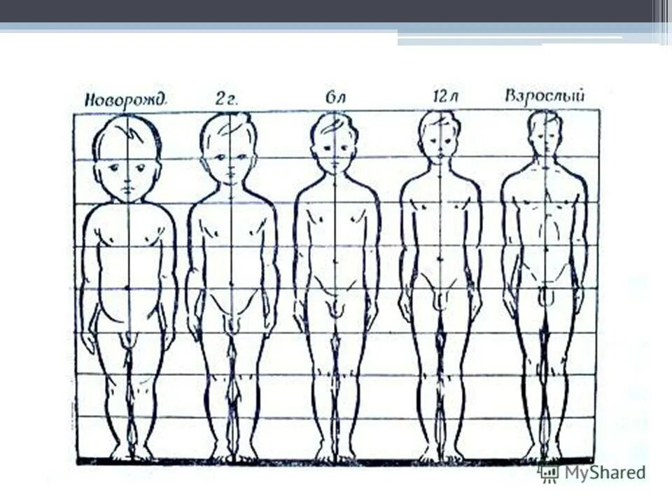 Возрастные изменения пропорций тела человека.