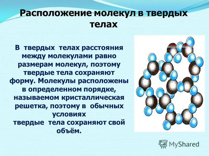 Расположения молекул структура вещества твердое.
