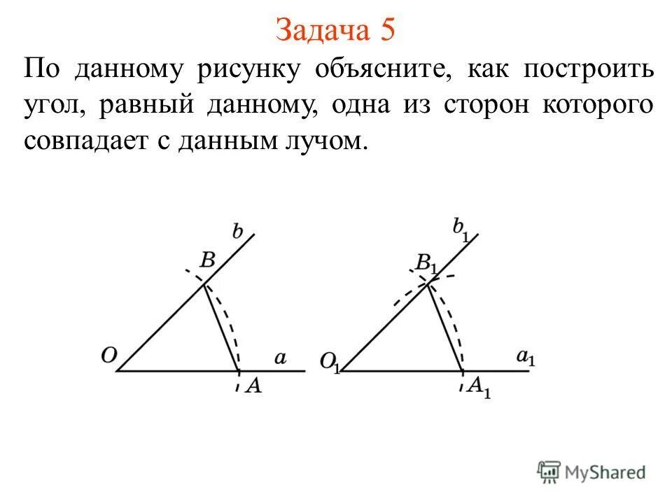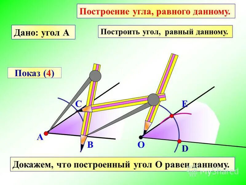 Построение угла равного данному 7 класс.