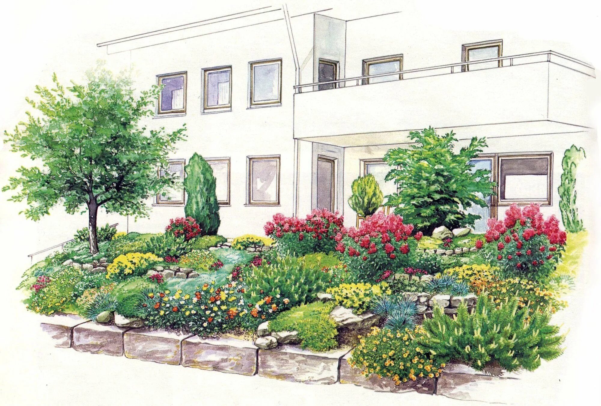 Цветы возле дома мультяшный.