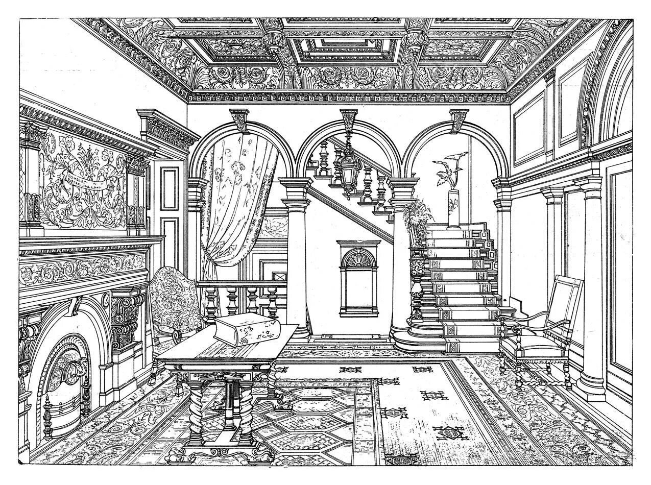 Интерьер дворца в графике.