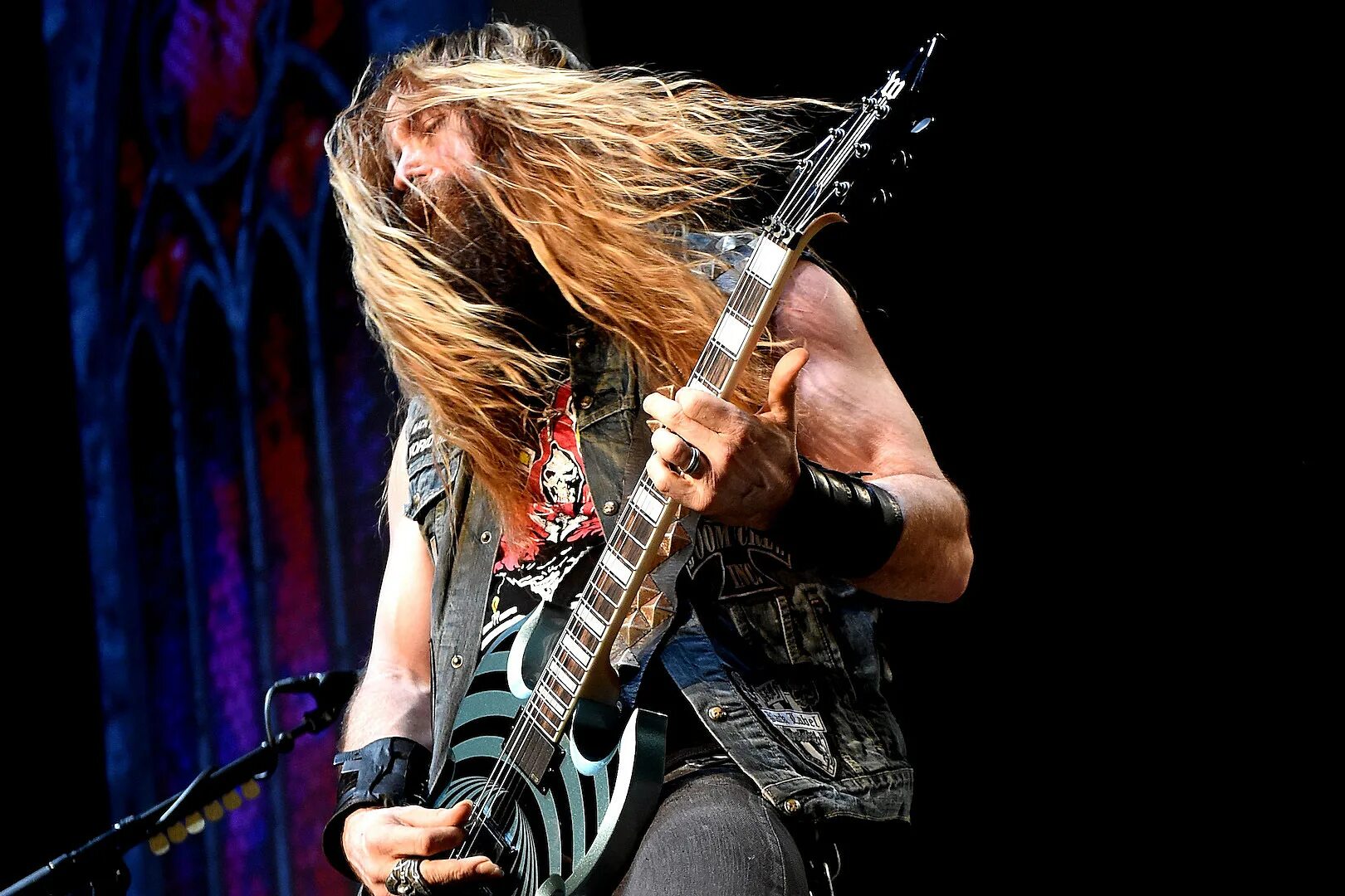 James Hetfield с черной гитарой.