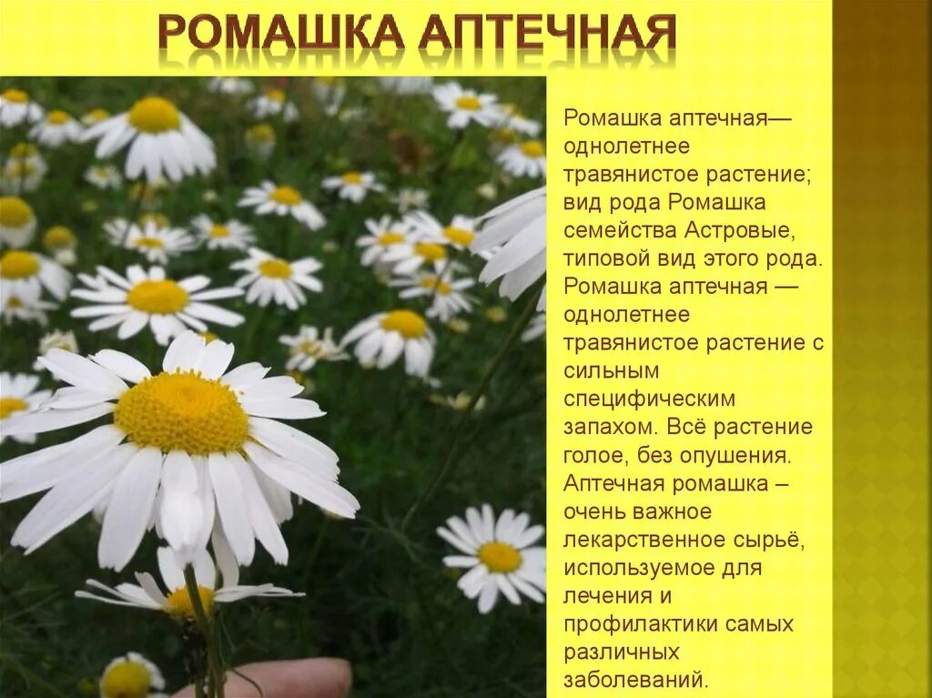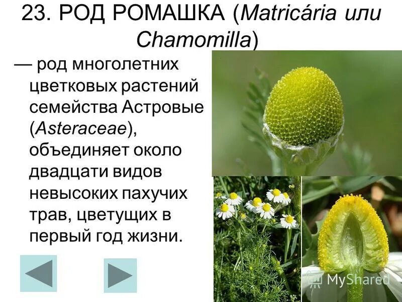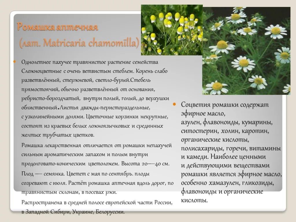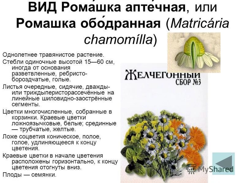 Семейство Сложноцветные Ромашка аптечная.