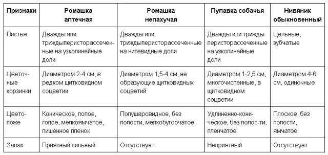 Ромашка таблица