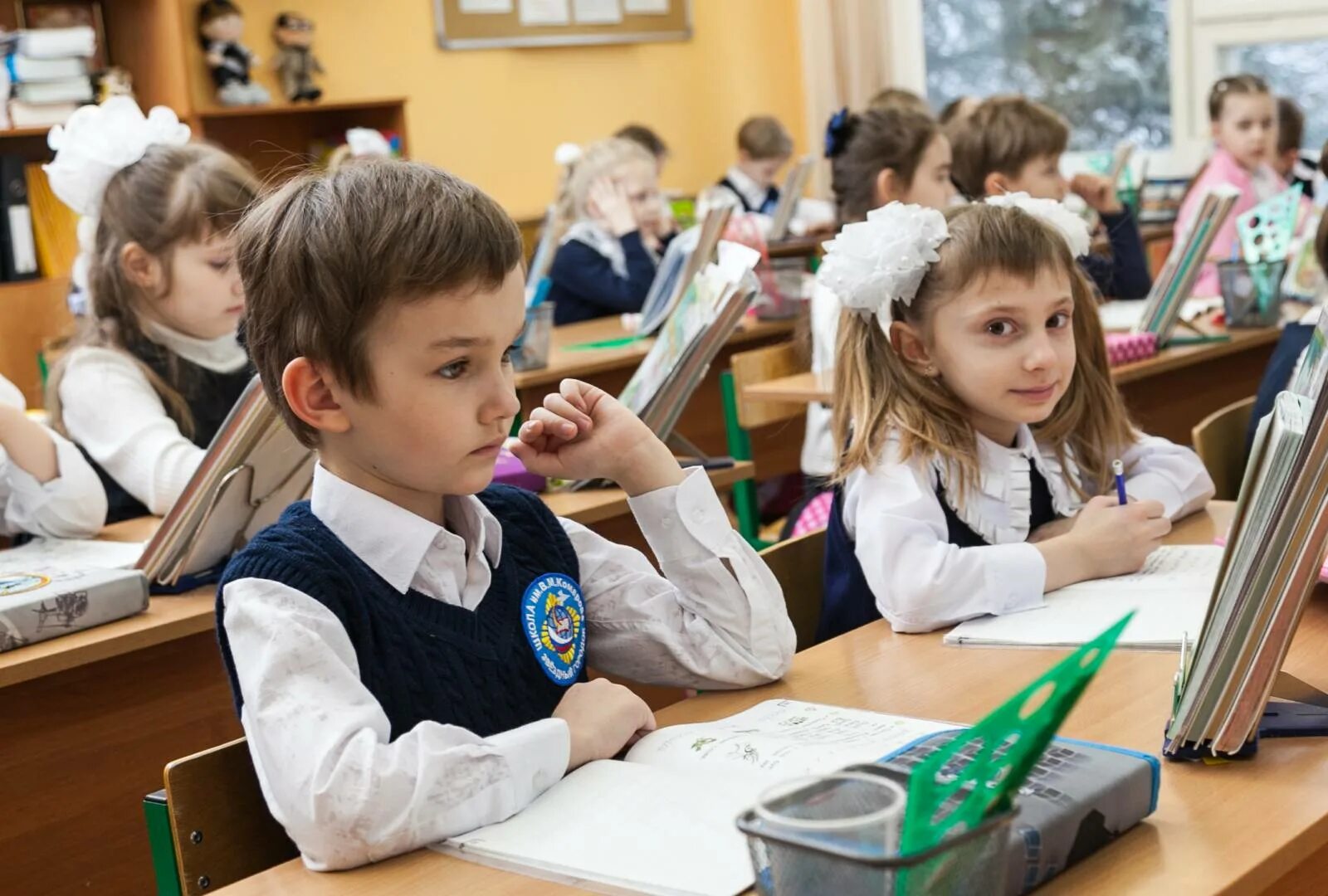 Первоклашка у доски.