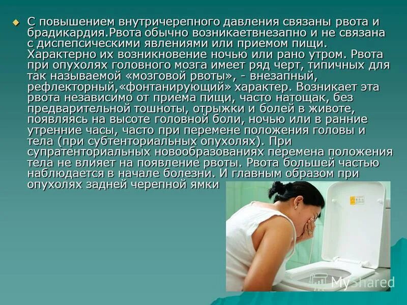 Тошнота и рвота при давлении.
