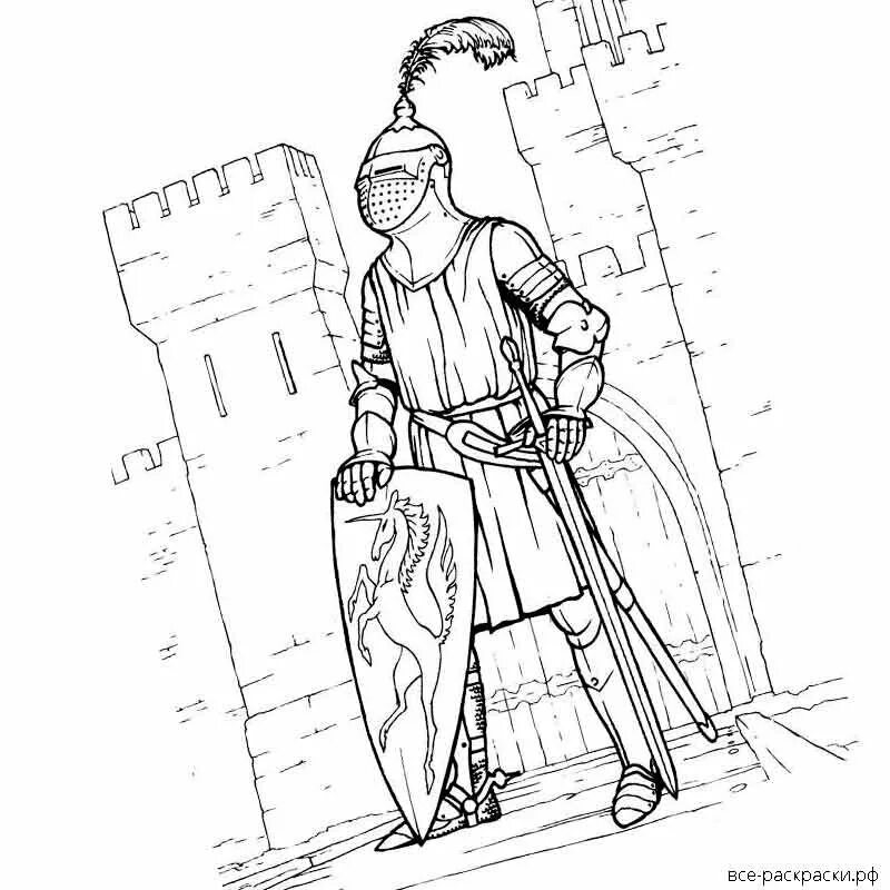 Средневековый рыцарь раскраска.