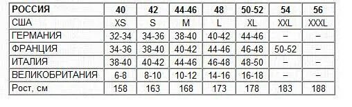 Размерная сетка женской одежды s 42 m 44 l 46.