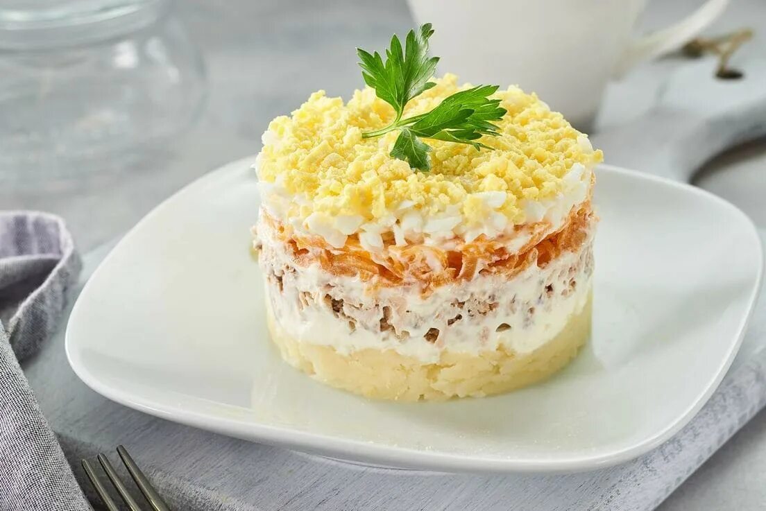 Салат Мимоза с тунцом.