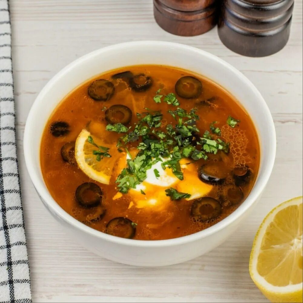 Сборная солянка с маслинами.