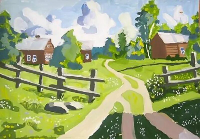 Рисование сельский пейзаж.