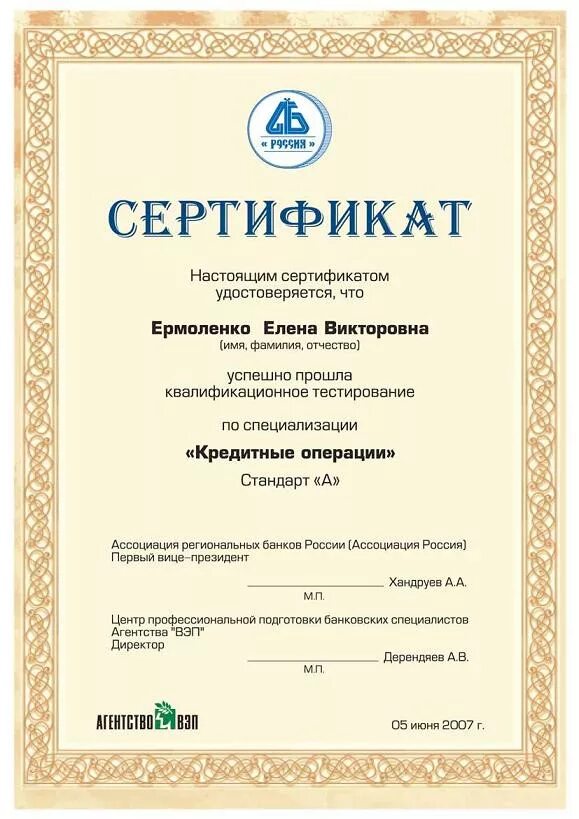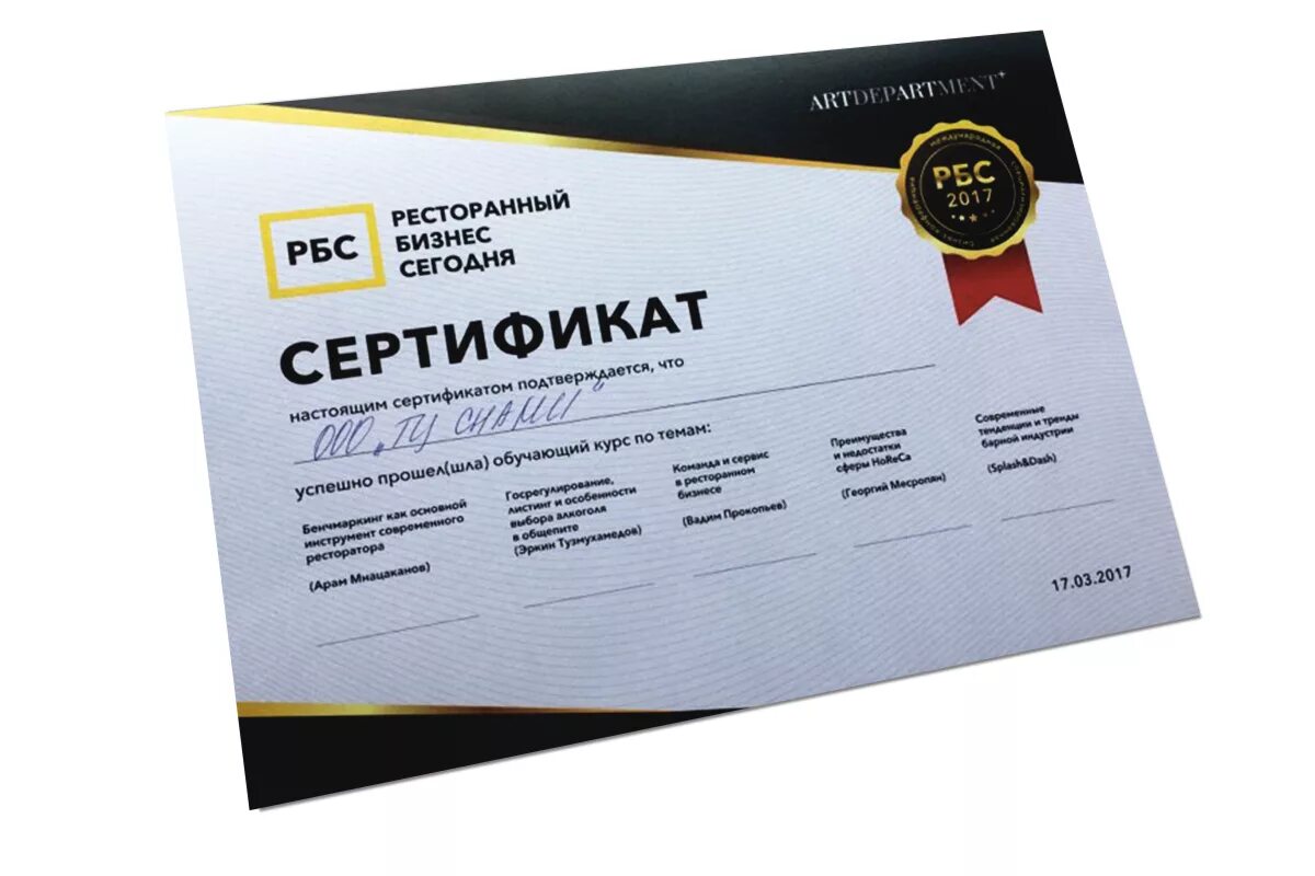 Сертификат образец.