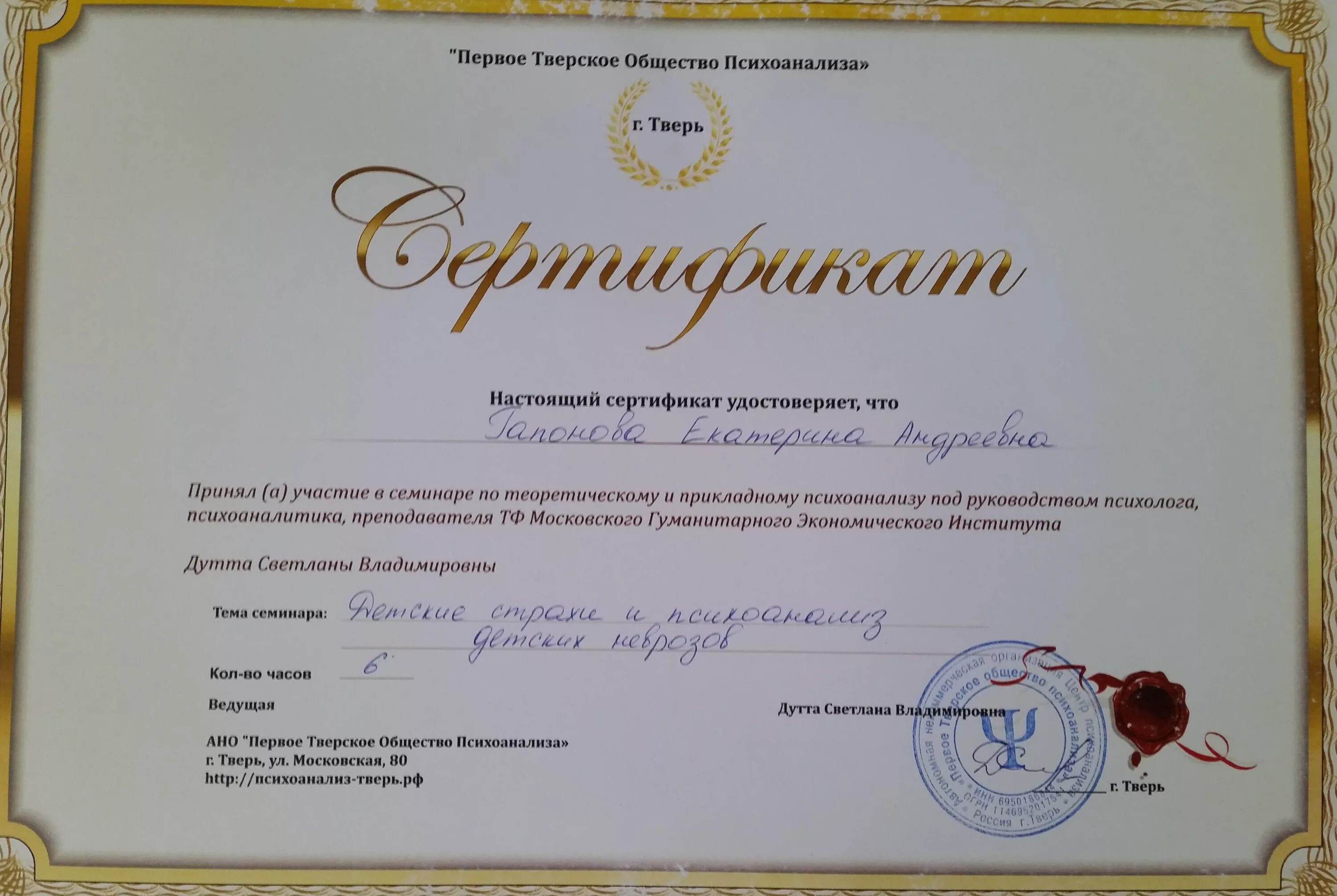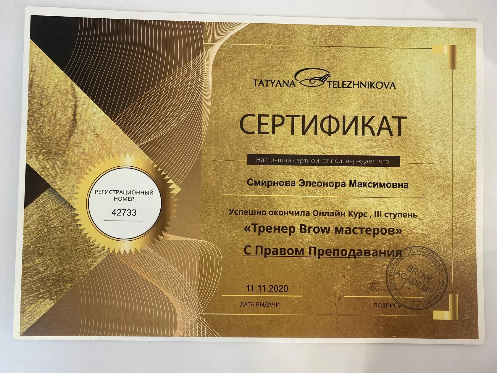 Сертификат фото.