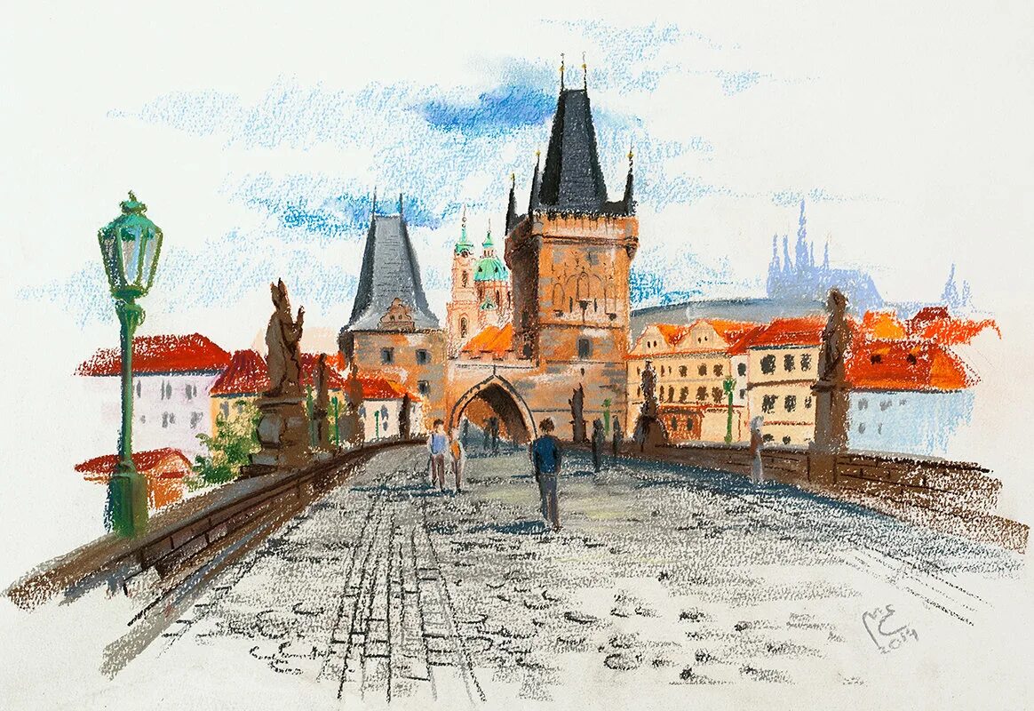 Городской пейзаж пастель Прага.