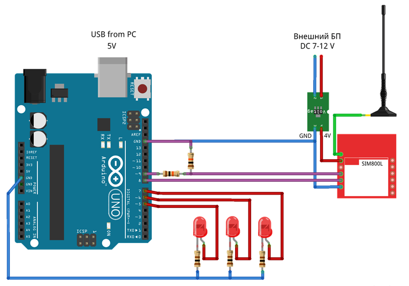 Sim800c и Arduino Nano схема.