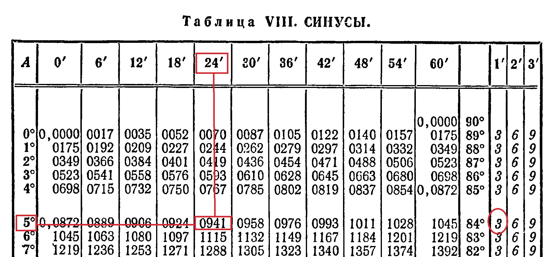 Синус 50 градусов равен таблица Брадиса.
