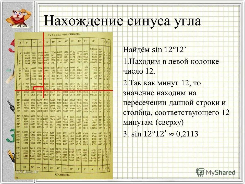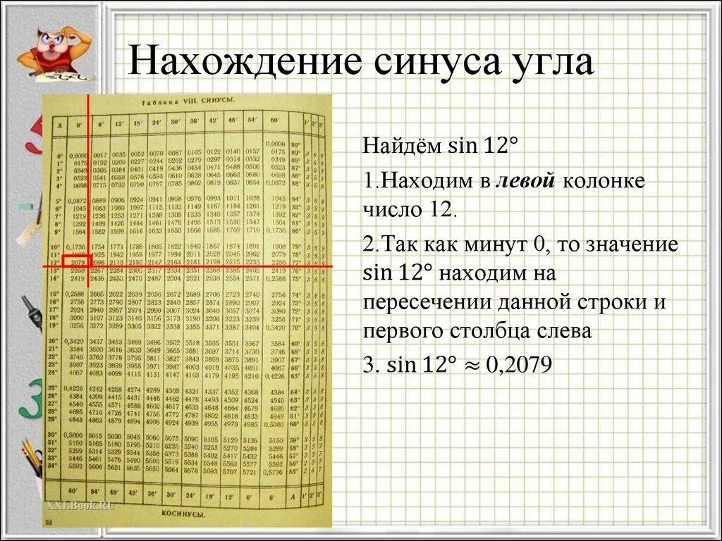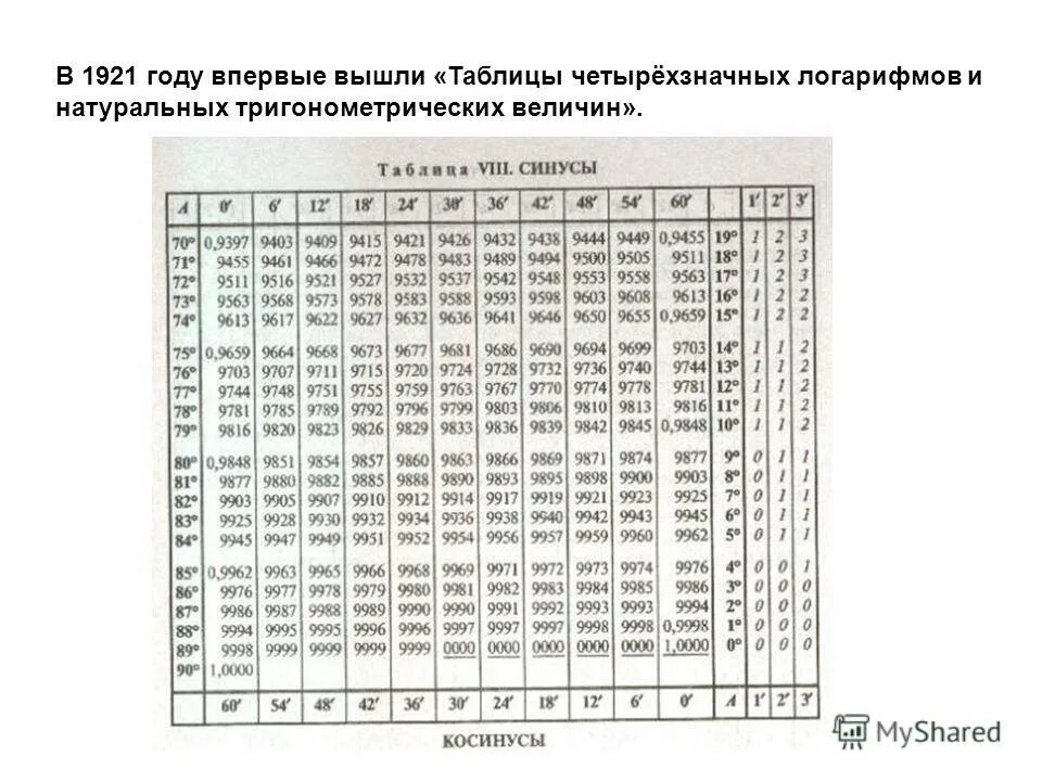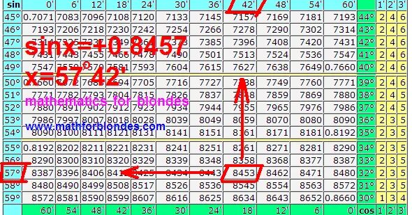 Таблица синусов 70 градусов.