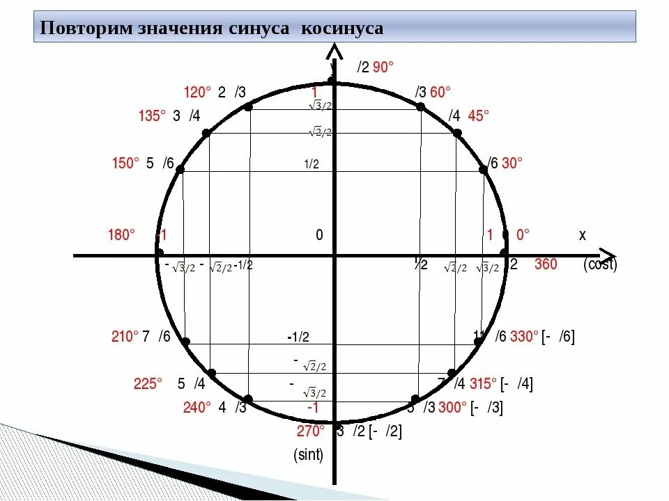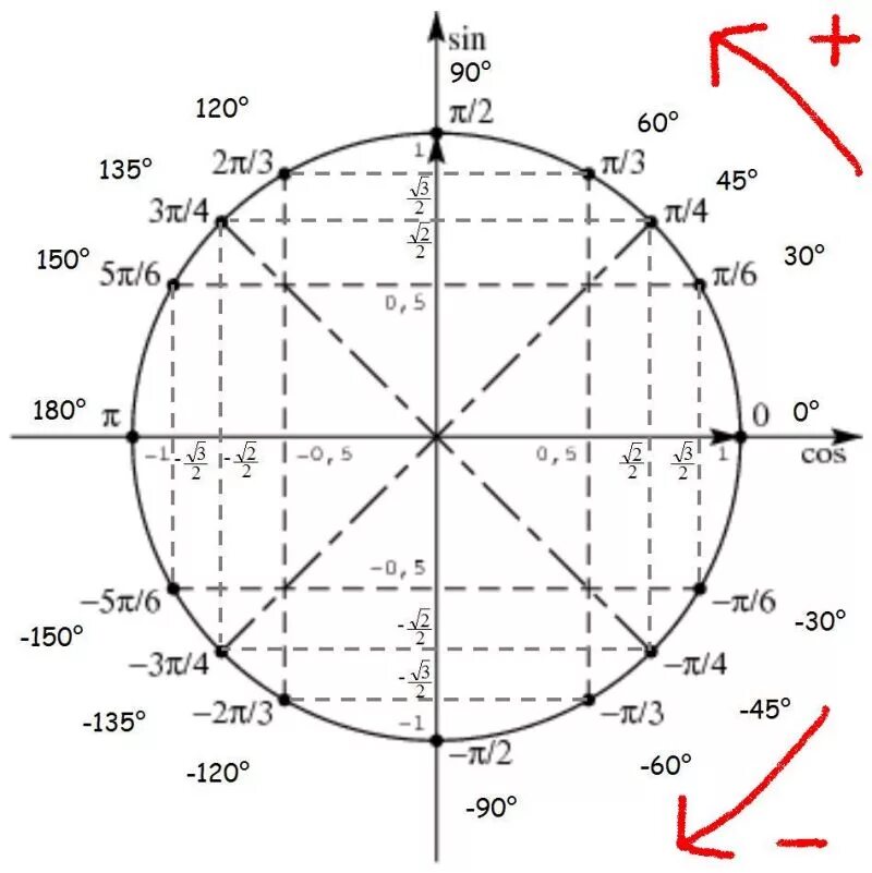 Косинус -пи/2 таблица.