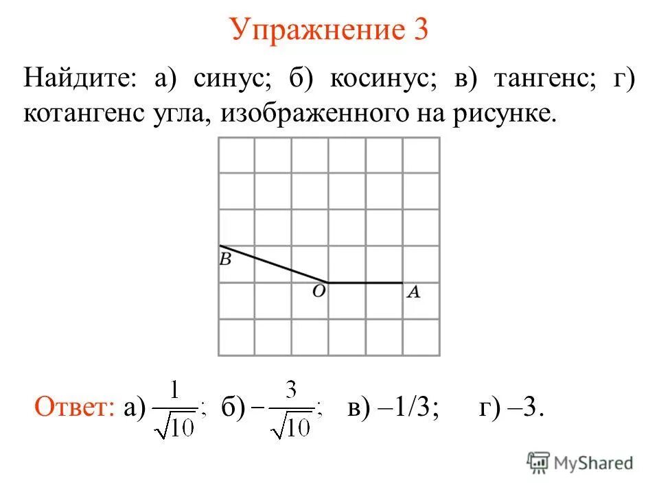 Найдите синус угла.