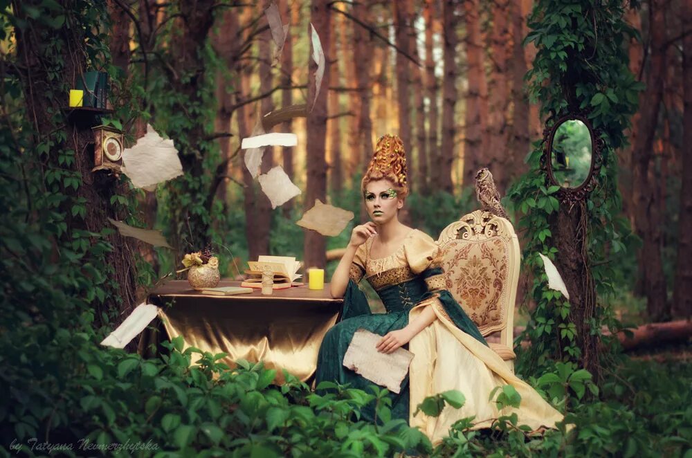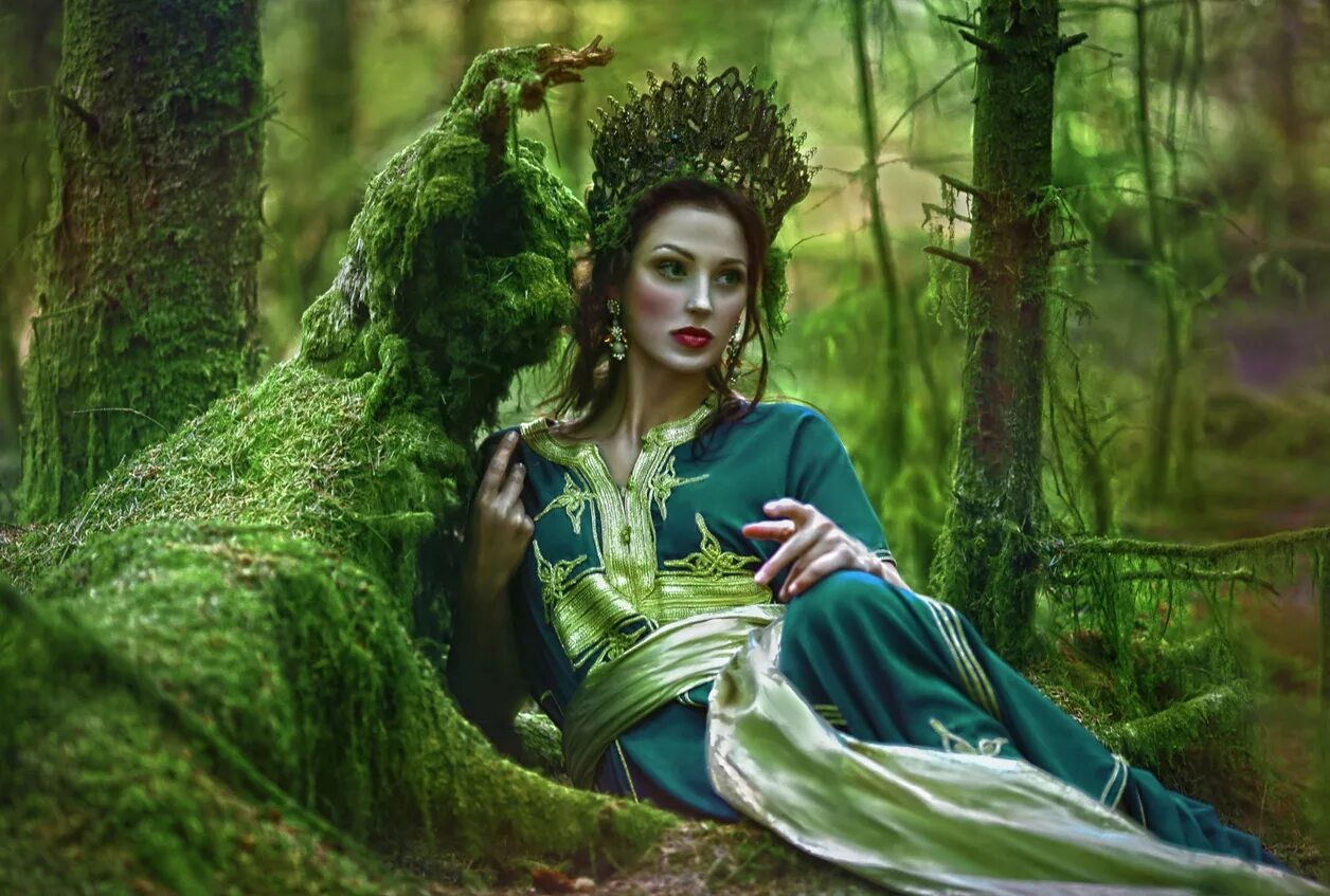Женщина в сказочном лесу.