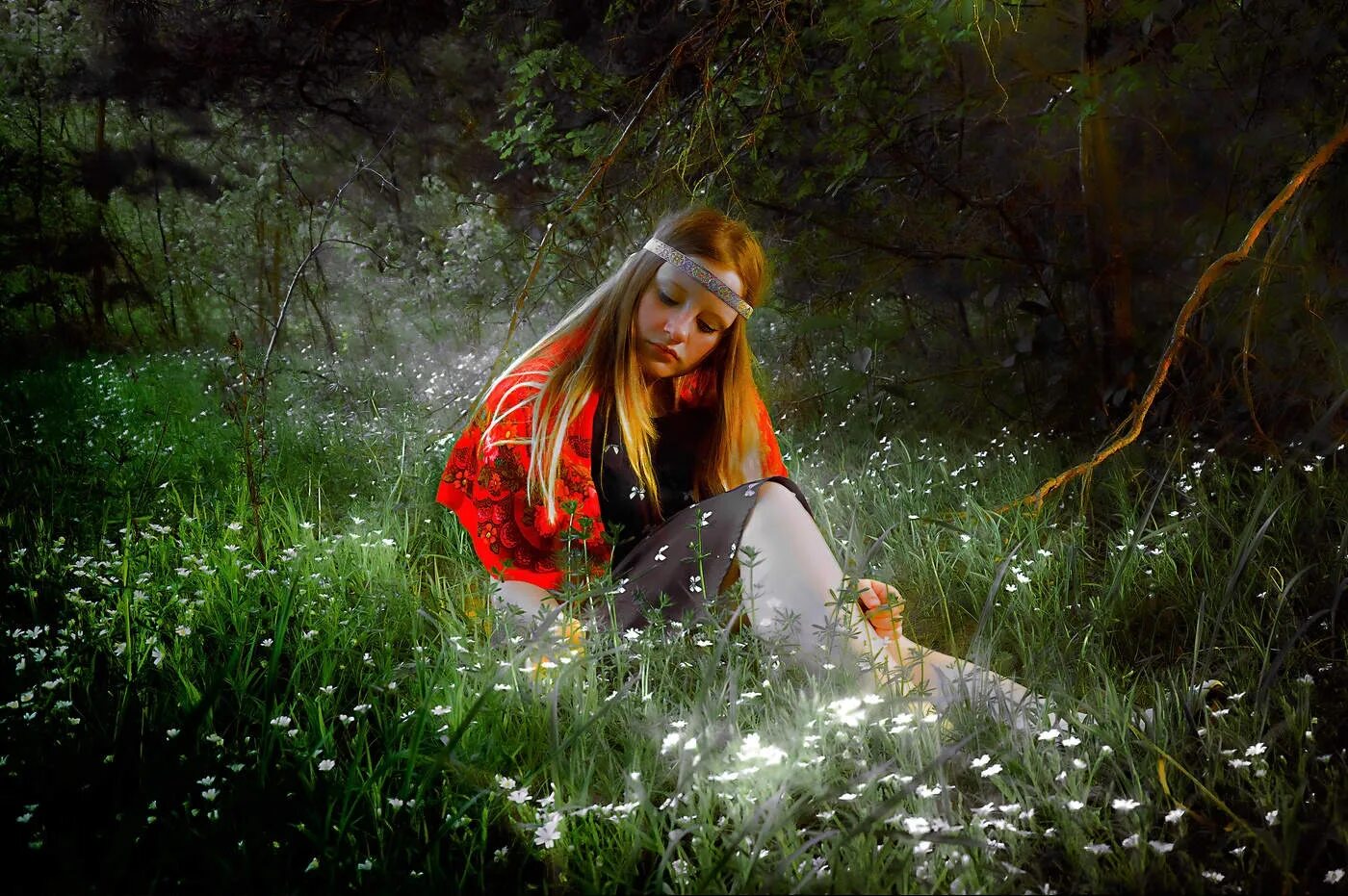 Девушка в волшебном лесу.