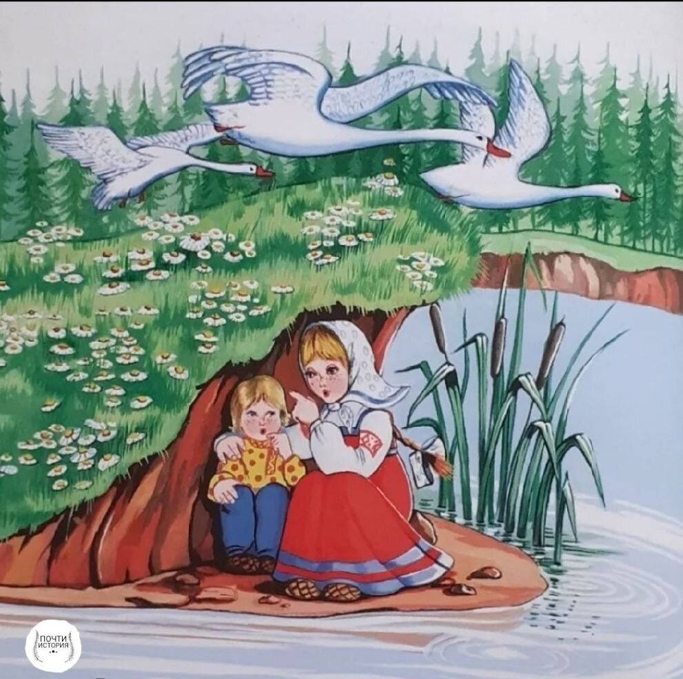 Сказка гуси лебеди картинки к сказке