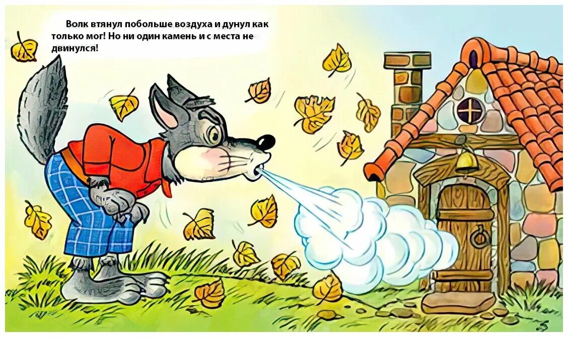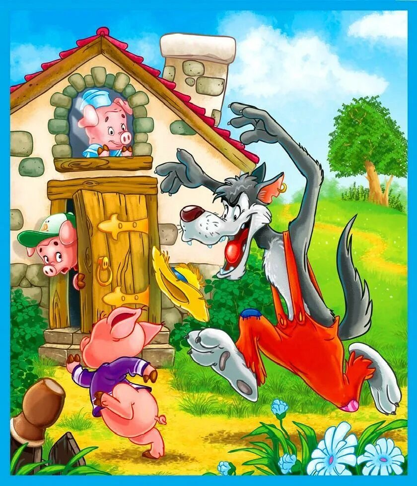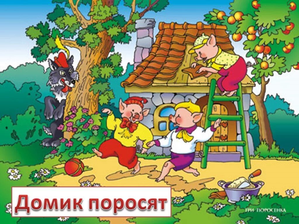 Три поросенка волк дует.
