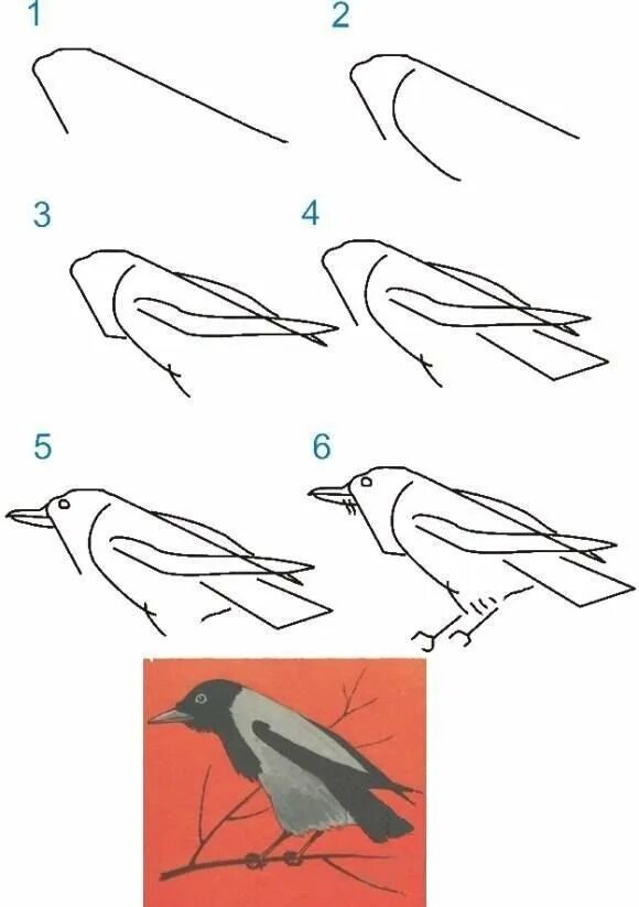 Схема рисования птицы.