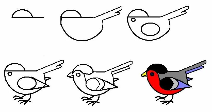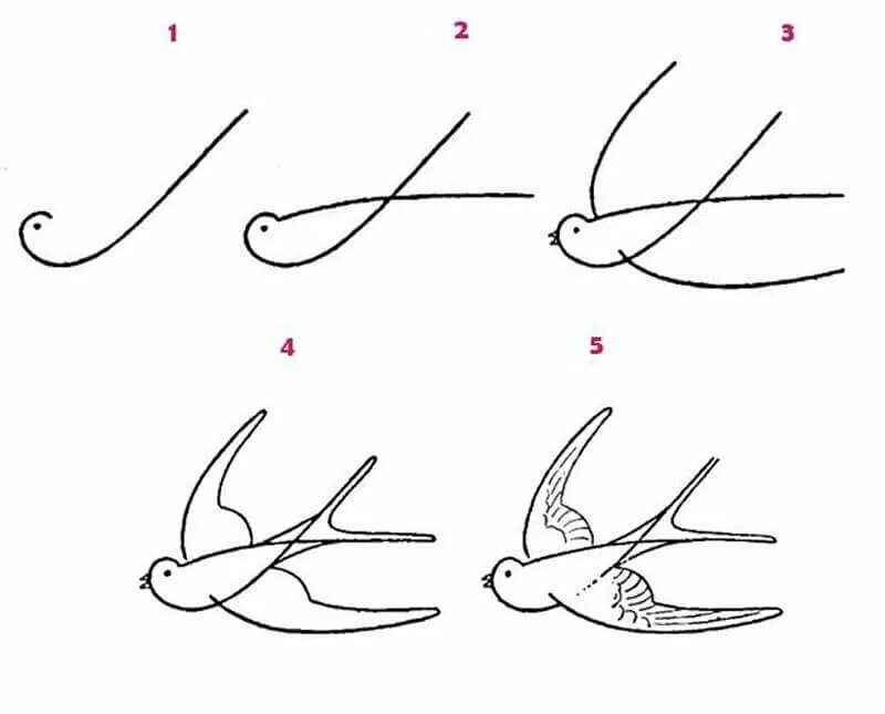 Схемы рисования птиц для дошкольников.