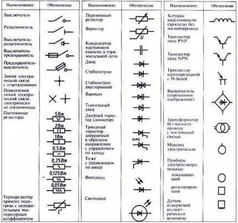 Обозначение элементов на схеме электрической принципиальной.