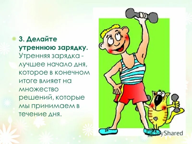 Делать утреннюю зарядку.
