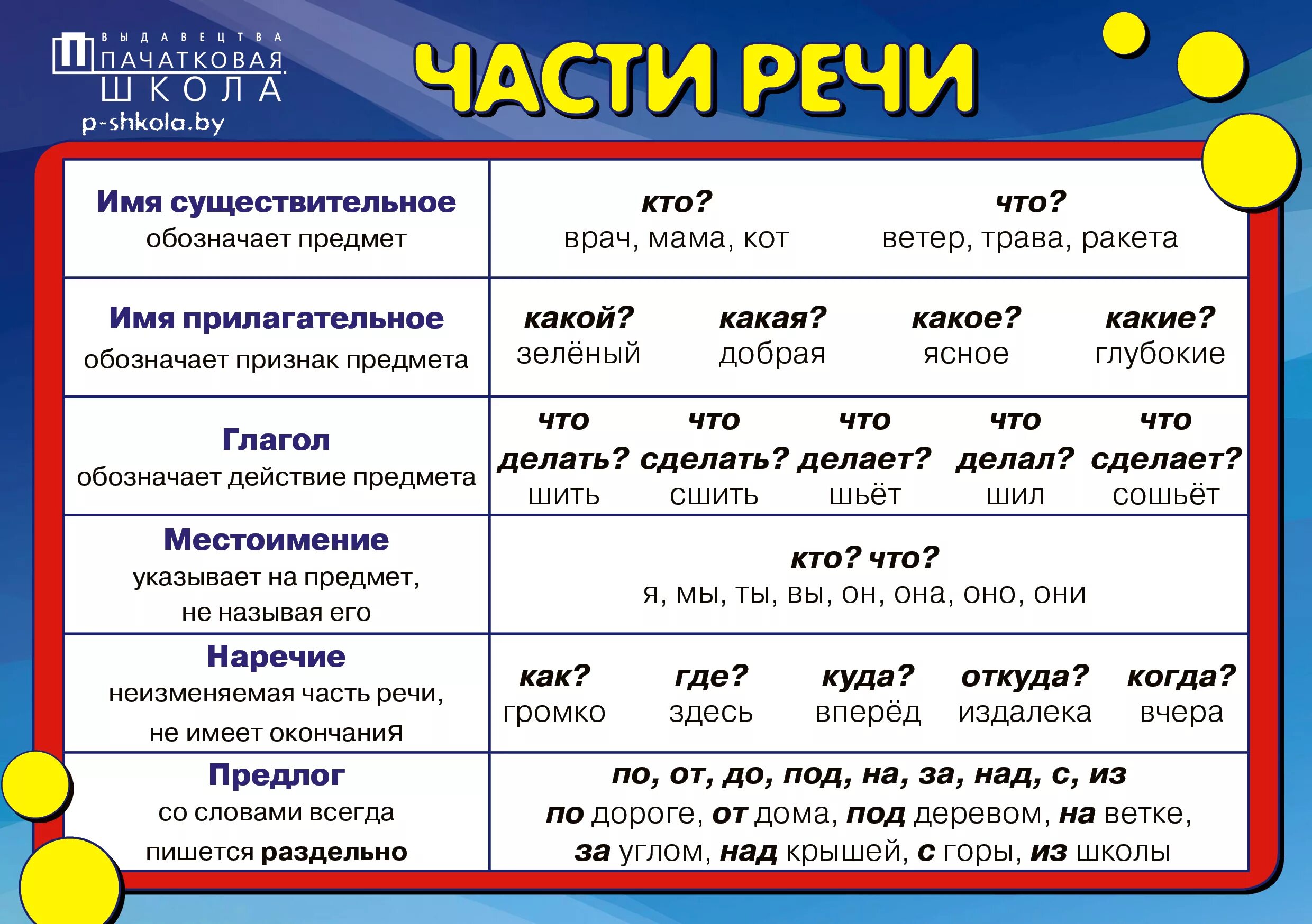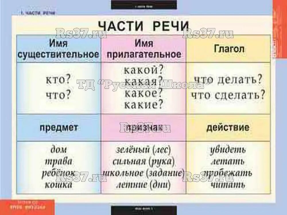 Части речи имя существительное имя прилагательное глагол.