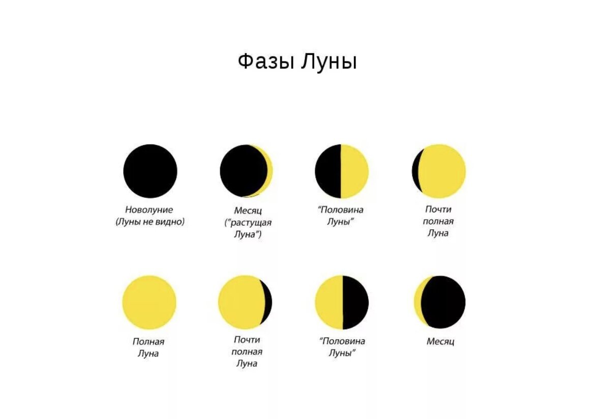 Фазы Луны схема фаз.