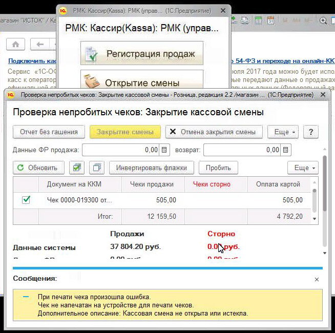 1с ошибка открытия смены.