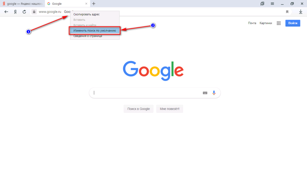 Как изменить поисковую систему.