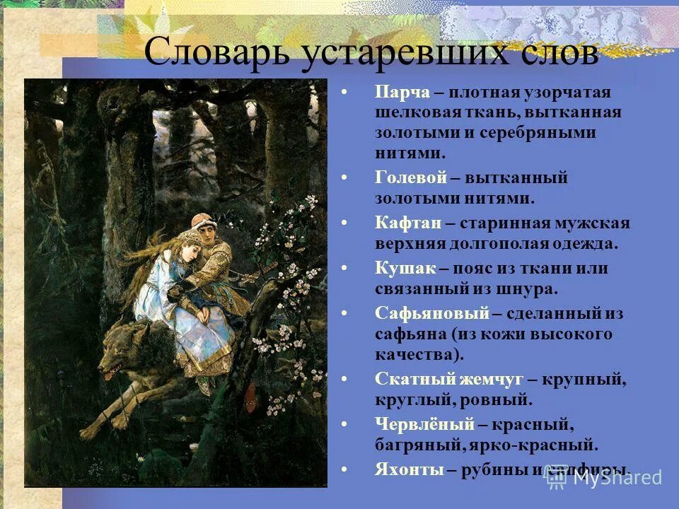 Картина в м Васнецова Иван Царевич на сером волке 4 класс.