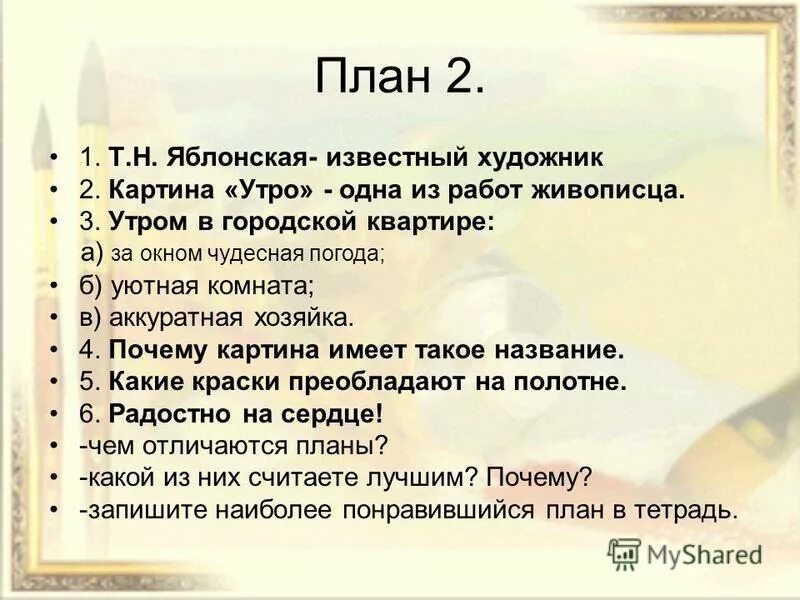 Т Н Яблонской утро сочинение 6 класс.