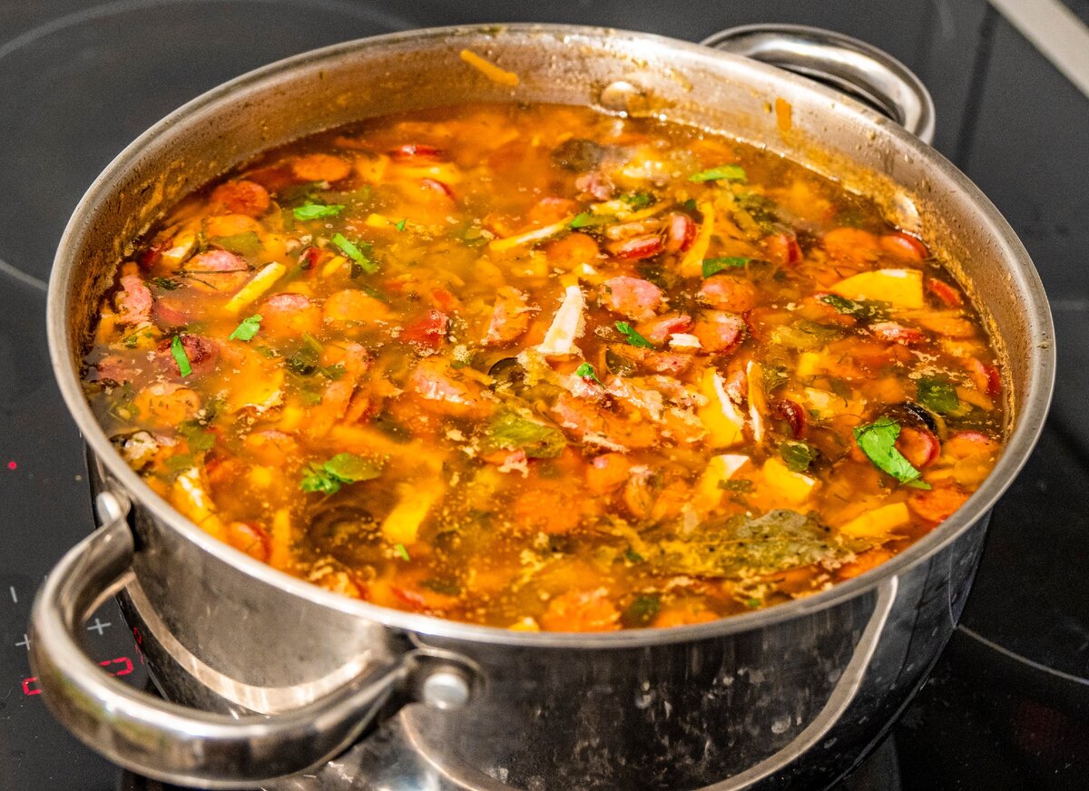 Солянка с охотничьими колбасками.
