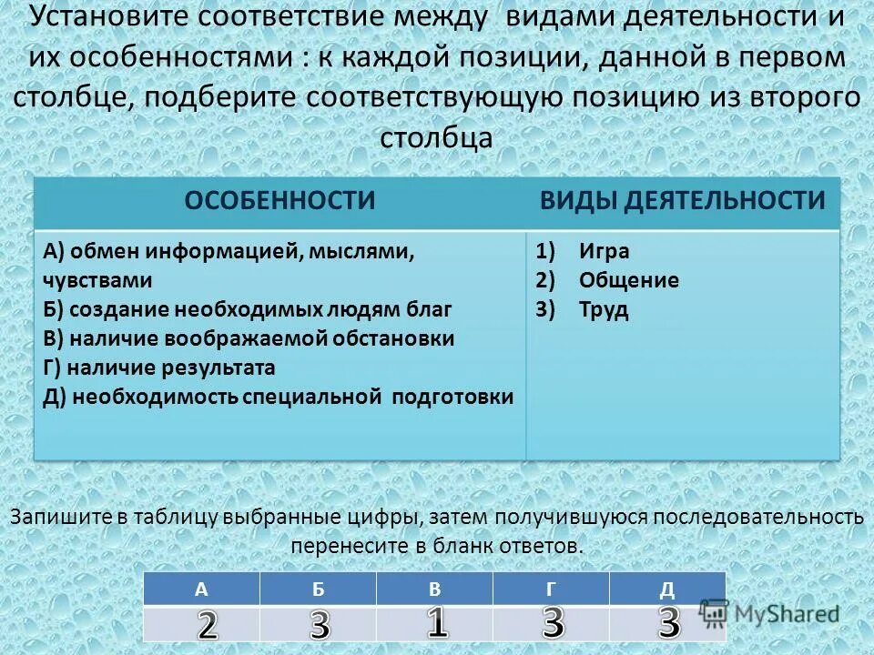 Соответствие между каждым рисунком.