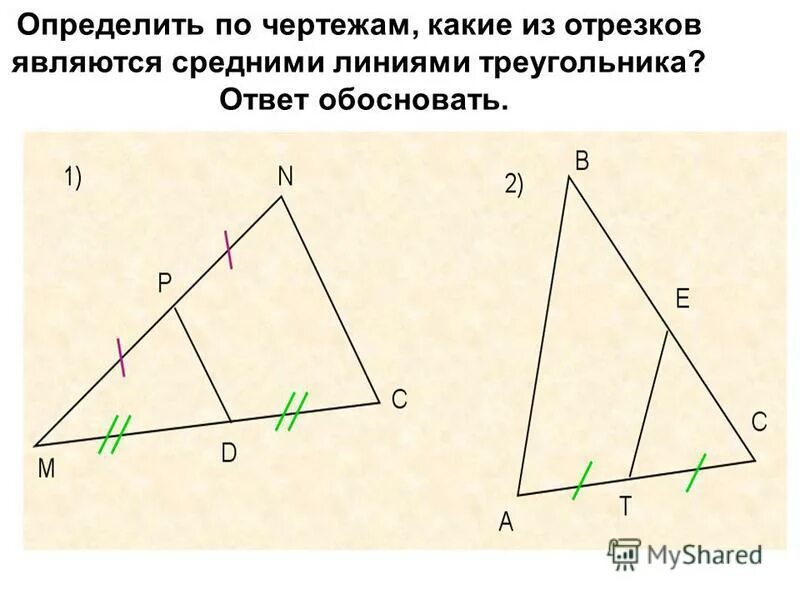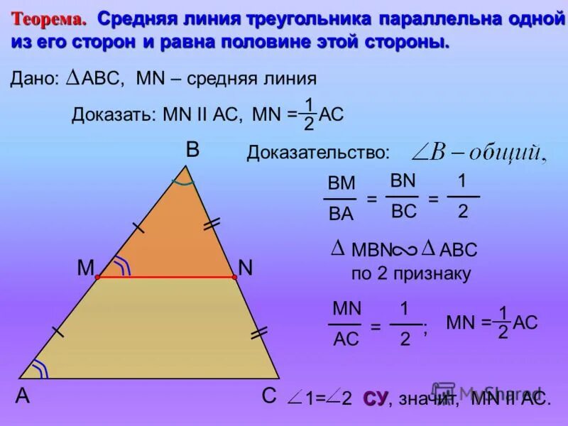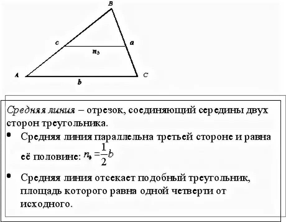 Средняя линия треугольника формула.