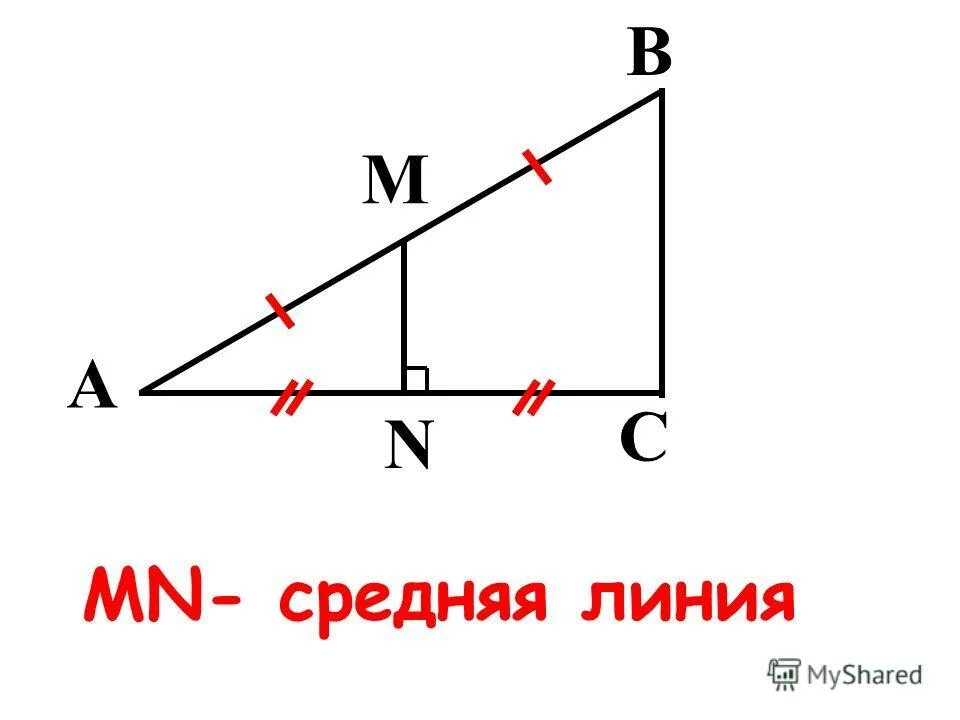 Средняя линия прямоугольного треугольника формула.
