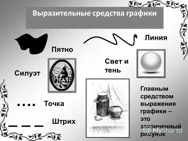 Пятно основное средство изображения на плоскости.
