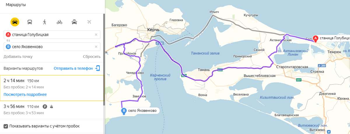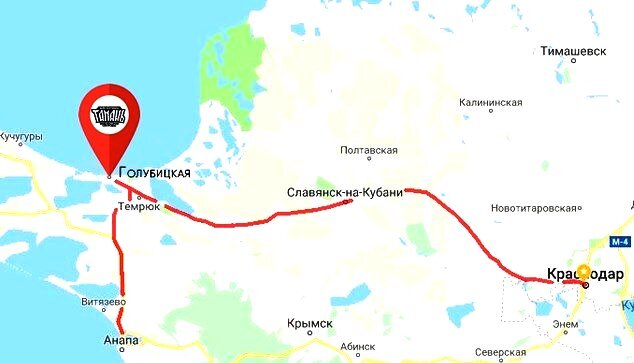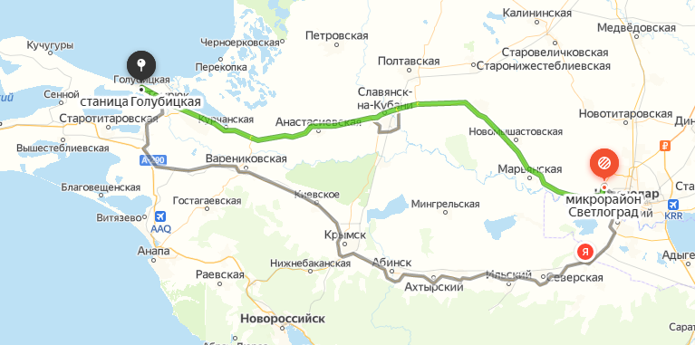 Маршрут Анапа -станица Голубицкая.