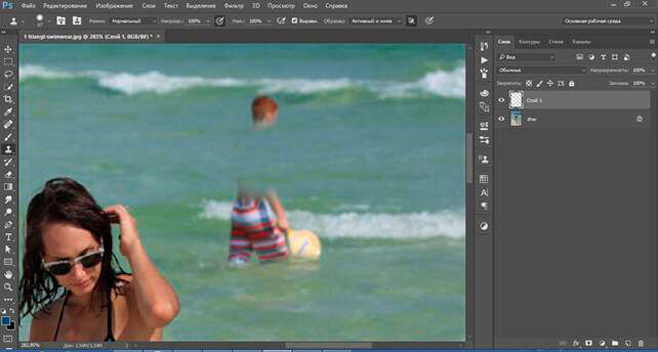 Как в фотошопе убрать надпись с картинки.