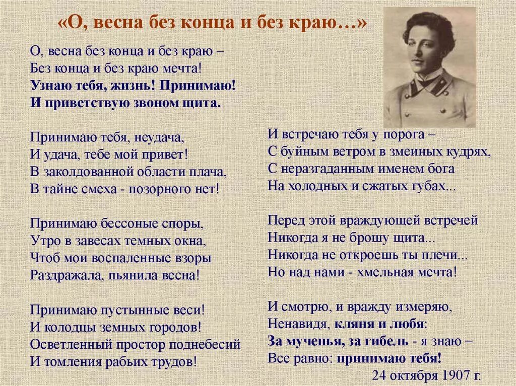 Стих блока встану я в утро туманное.