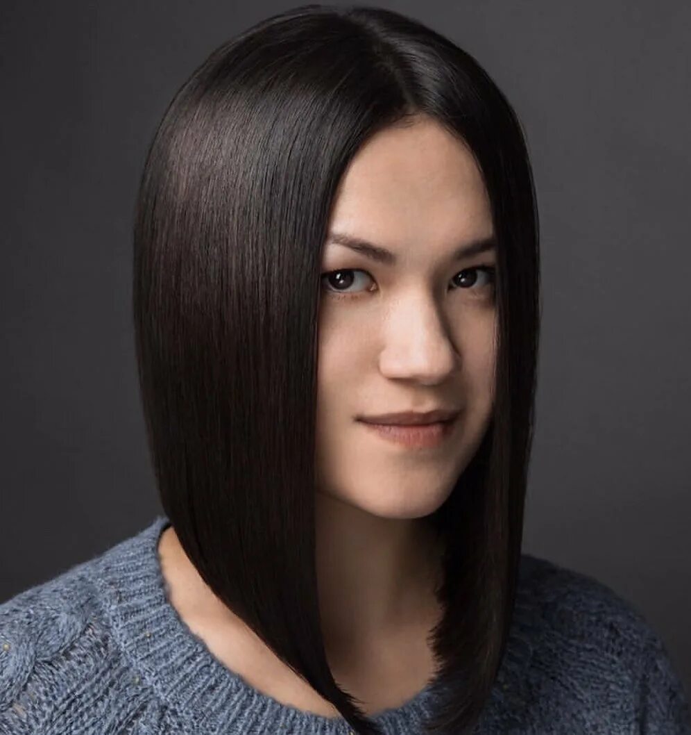 Прямое каре на средние волосы без челки темные волосы.
