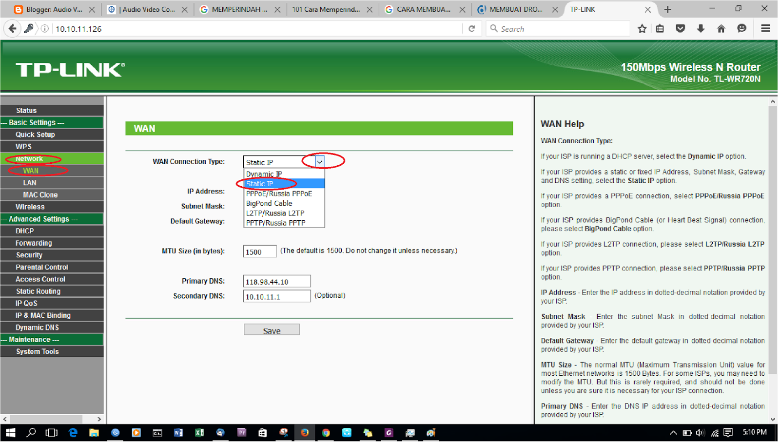 Subnet mask gateway.